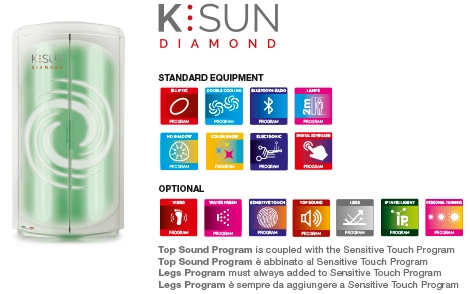 *Vibro Program: è una pedana oscillante che grazie alla scelta fra i 5 programmi (welcome plan - high impact - full tonic - body drain - slimming plan) fa del momento dell'abbronzatura anche un'occasione per una sana attività fisica.